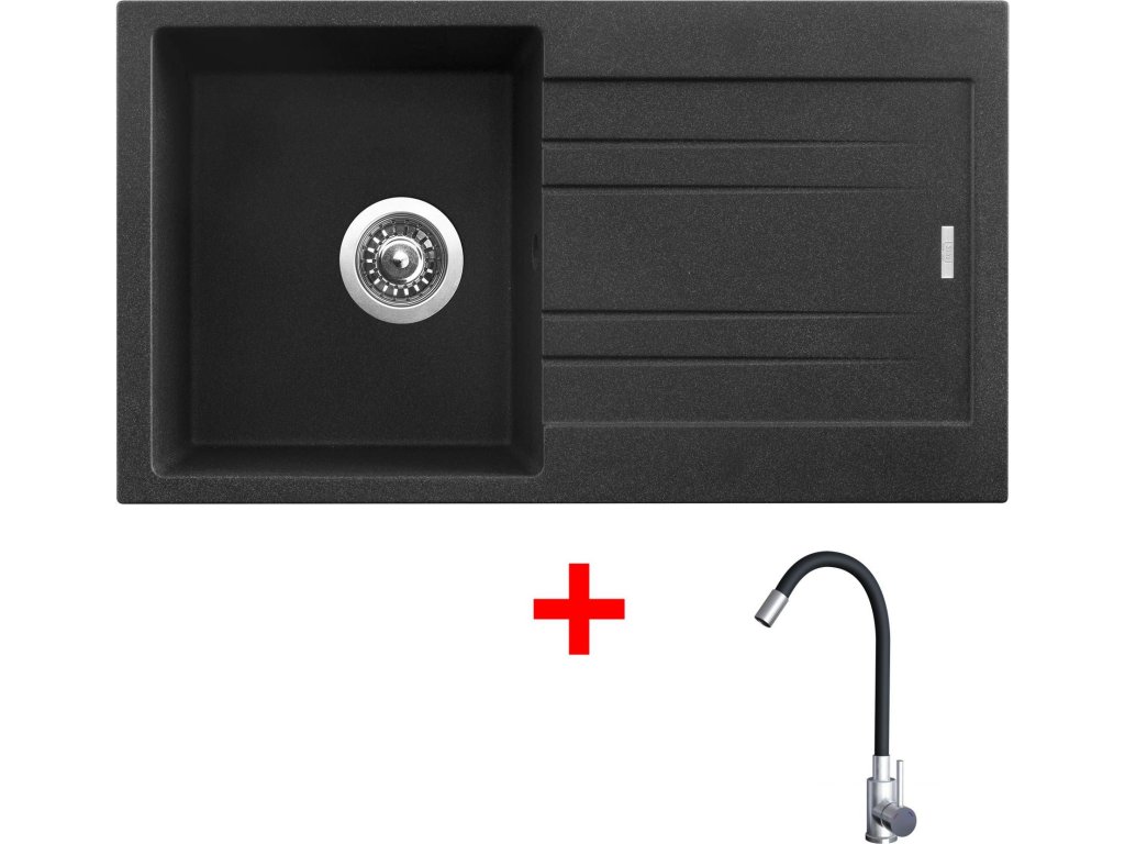 Granitový dřez Sinks RAPID 780 Granblack + Elasta nerez/černá G20630