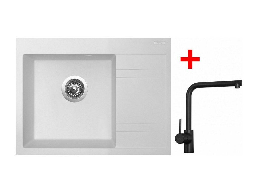 Granitový dřez Sinks RIM 650 L Milk + Elka černá matná G2728