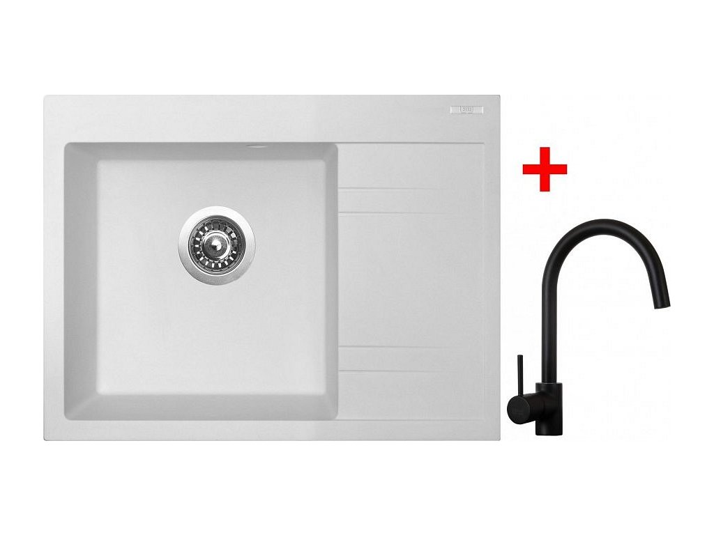 Granitový dřez Sinks RIM 650 L Milk + Vitalia černá matná G2328