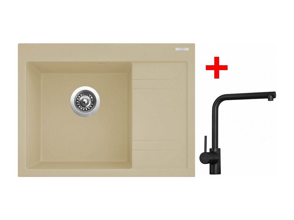 Granitový dřez Sinks RIM 650 L Sahara + Elka černá matná G2750