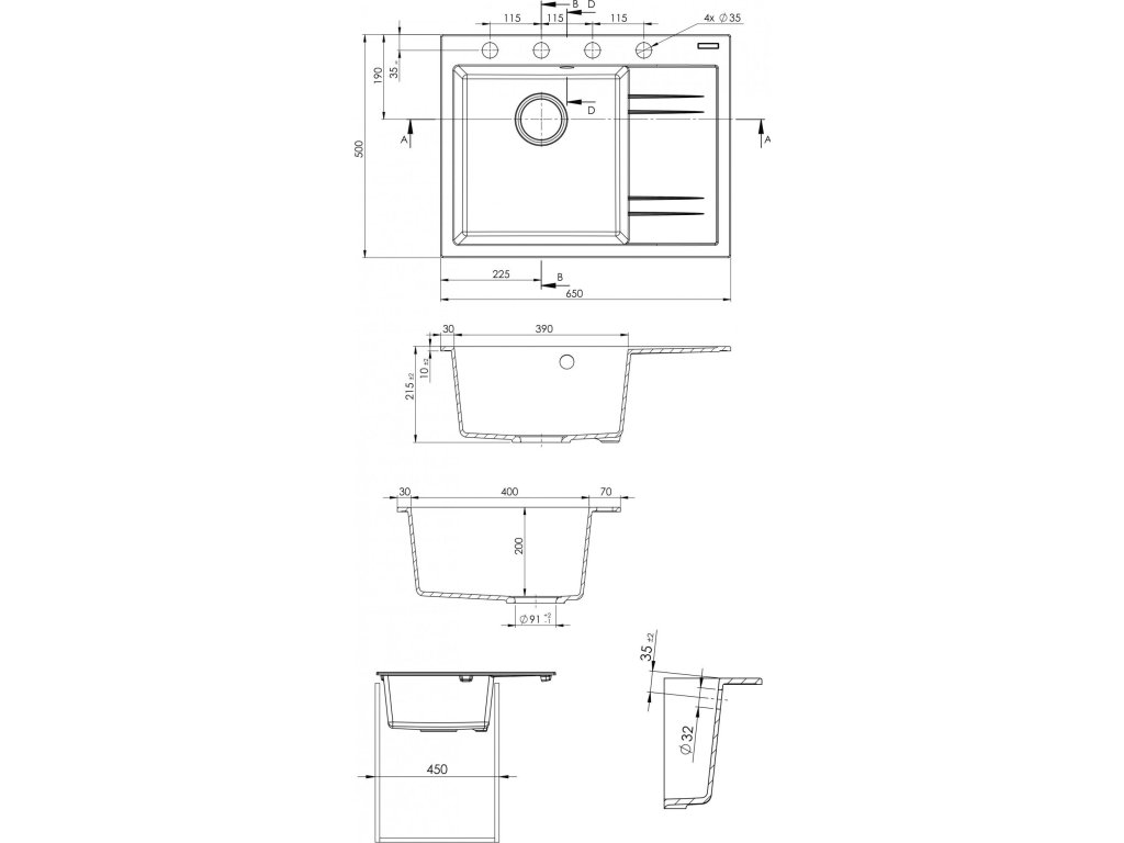 Granitový dřez Sinks RIM 650 L Granblack + Mix 3 P GR G2830