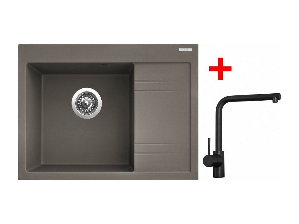 Granitový dřez Sinks RIM 650 L Truffle + Elka černá matná G2754