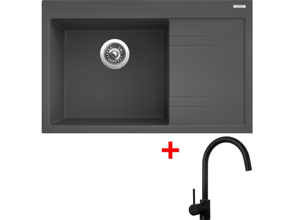 Granitový dřez Sinks RIM 780 L Titanium + Vitalia černá matná G5172