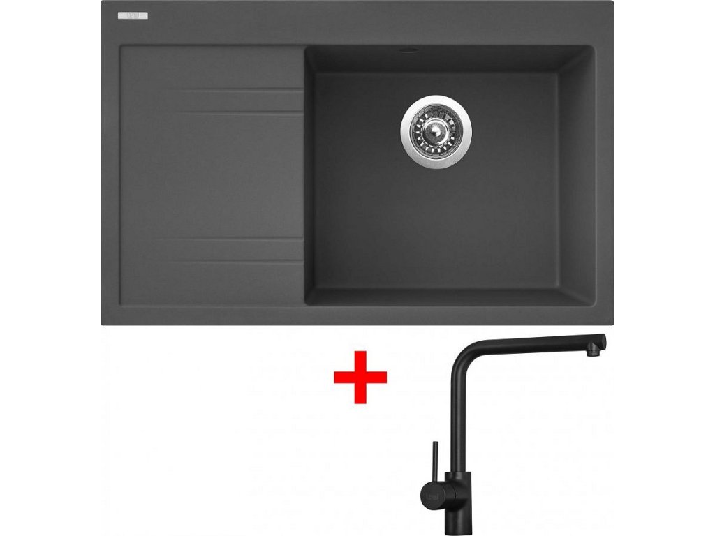Granitový dřez Sinks RIM 780 P Titanium + Elka černá matná G6372