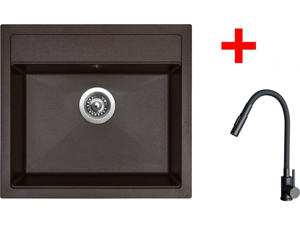 Granitový dřez Sinks SOLO 560 Marone + ELASTA S černá matná G24293