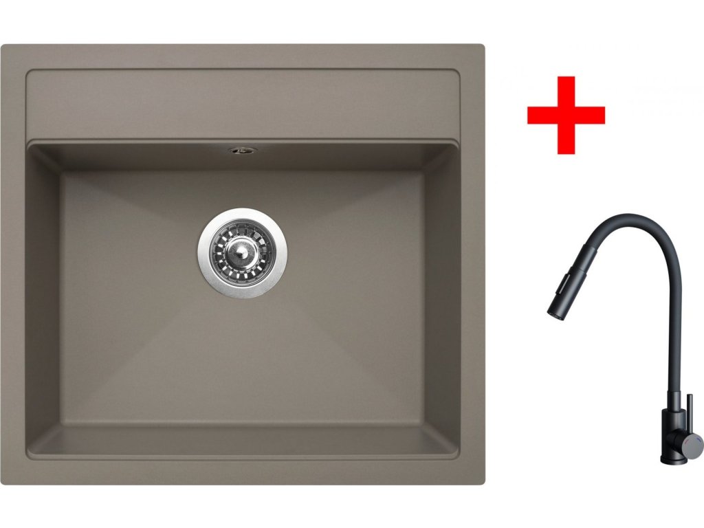 Granitový dřez Sinks SOLO 560 Truffle + ELASTA S černá matná G24254