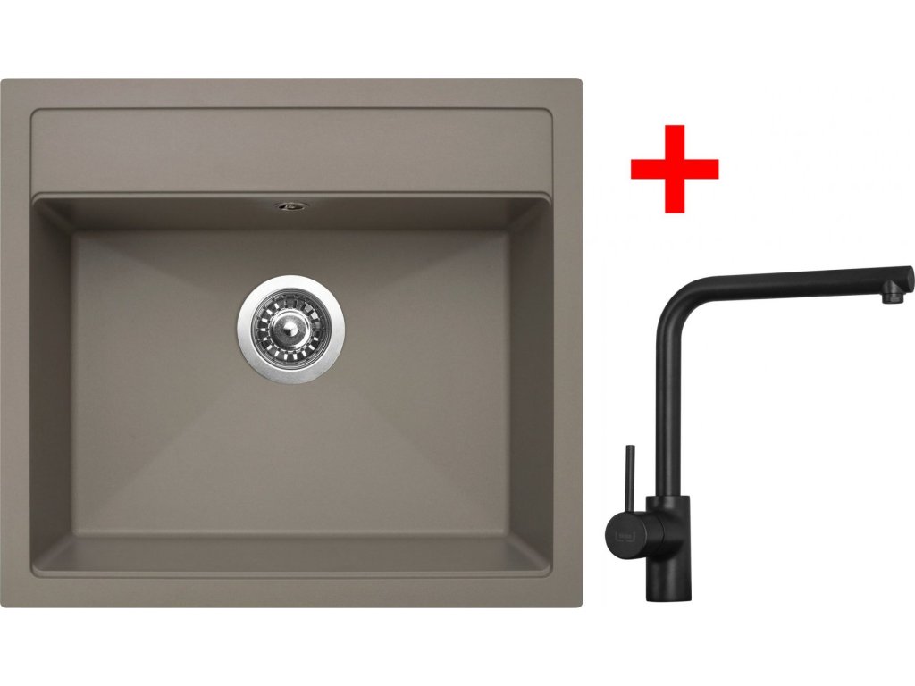 Granitový dřez Sinks SOLO 560 Truffle + ELKA Černá matná G23954