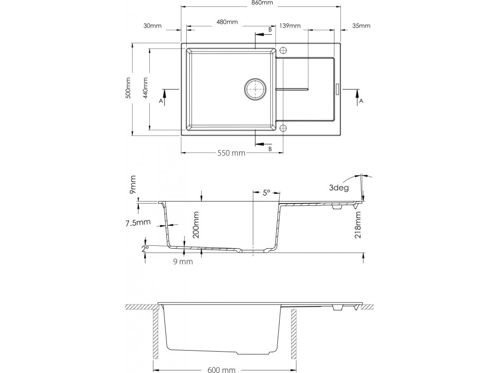 Granitový dřez Sinks ULTIMA 860 XXL Pureblack + Vitalia G14226