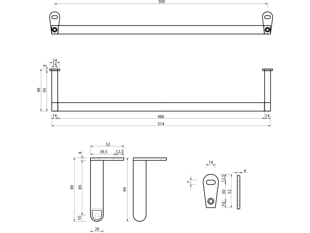 GSI CLASSIC čelní držák ručníků 60cm, chrom PACL60