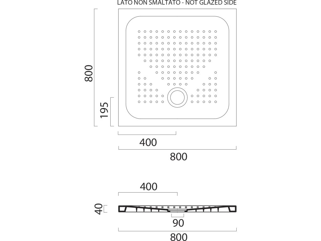 Boky vaniček, které jsou neglazované (určené k zazdění do zdi, či pod obklad), jsou na technickém výkresu označeny "not glazed side".