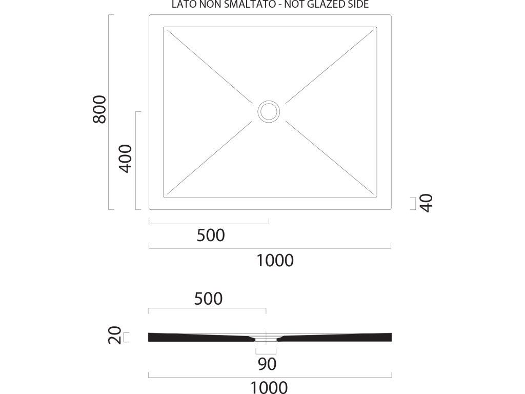 Boky vaniček, které jsou neglazované (určené k zazdění do zdi, či pod obklad), jsou na technickém výkresu označeny "not glazed side".
