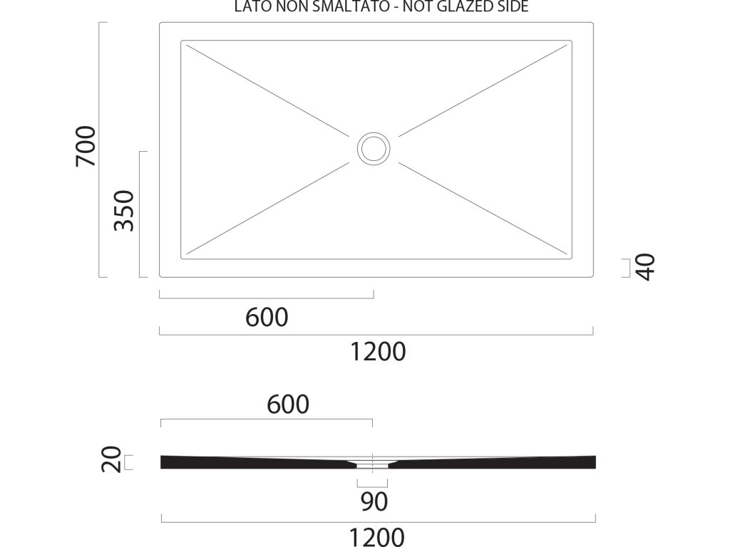 Boky vaniček, které jsou neglazované (určené k zazdění do zdi, či pod obklad), jsou na technickém výkresu označeny "not glazed side".