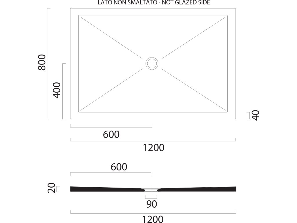 Boky vaniček, které jsou neglazované (určené k zazdění do zdi, či pod obklad), jsou na technickém výkresu označeny "not glazed side".