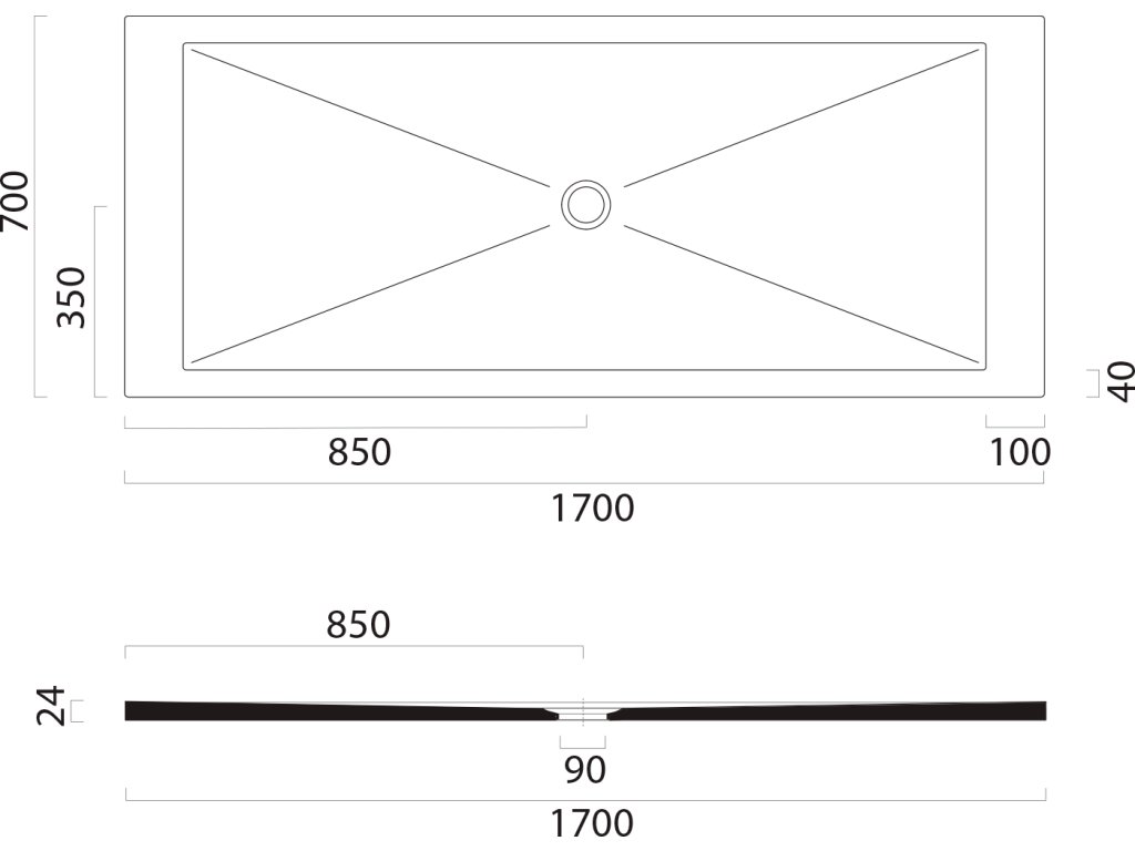 GSI Keramická sprchová vanička, obdélník 170x70x2cm, černá mat 46170726