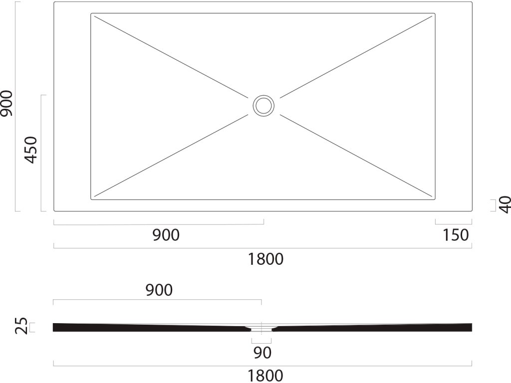 GSI Keramická sprchová vanička, obdélník 180x90x2cm, bílá mat 46180909