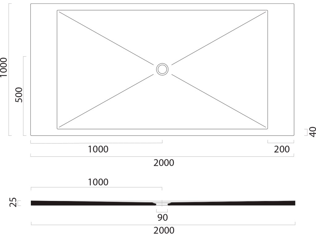 GSI Keramická sprchová vanička, obdélník 200x100x2cm, černá mat 46201026