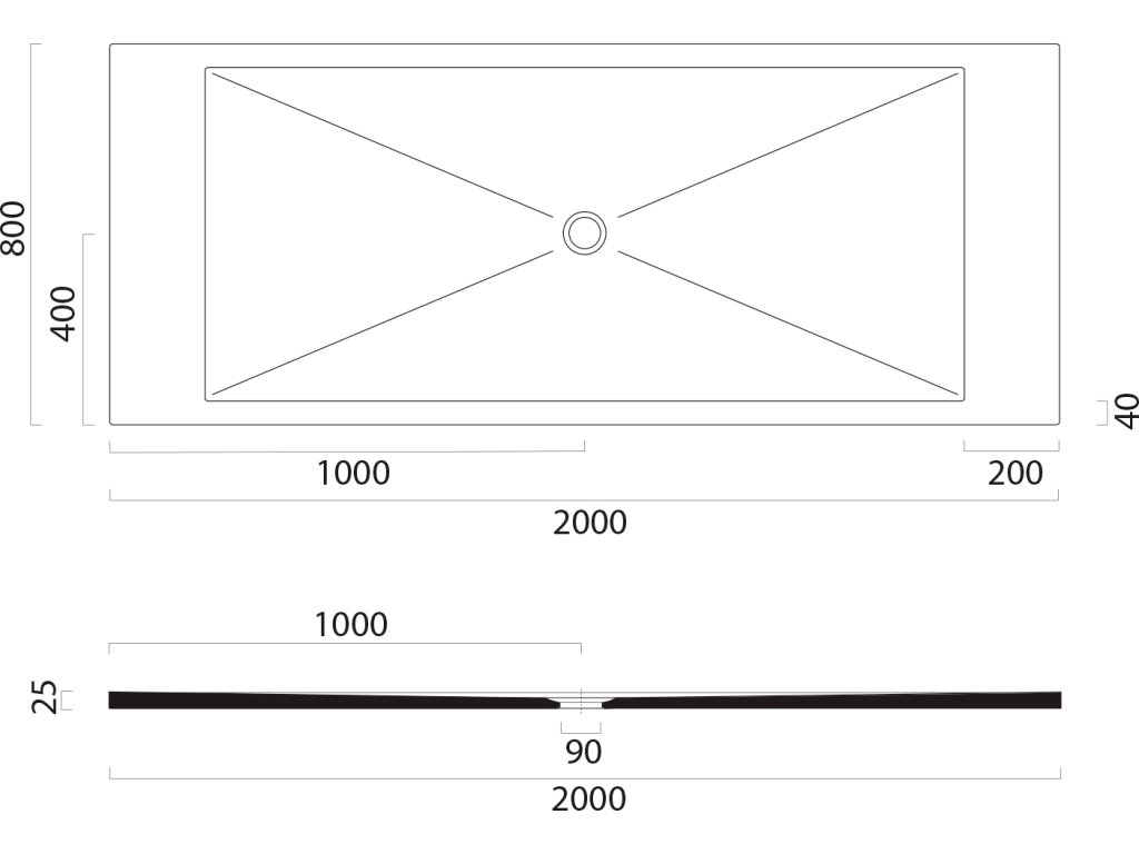 GSI Keramická sprchová vanička, obdélník 200x80x2cm, černá mat 46200826
