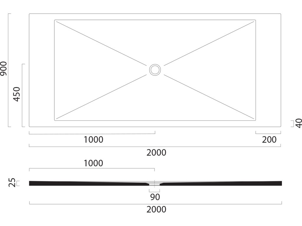 GSI Keramická sprchová vanička, obdélník 200x90x2cm, cenere mat 46200917