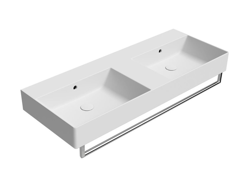 GSI KUBE X keramické dvojumyvadlo 120x47cm, broušená spodní hrana, bez otvoru, bílá mat 94259009