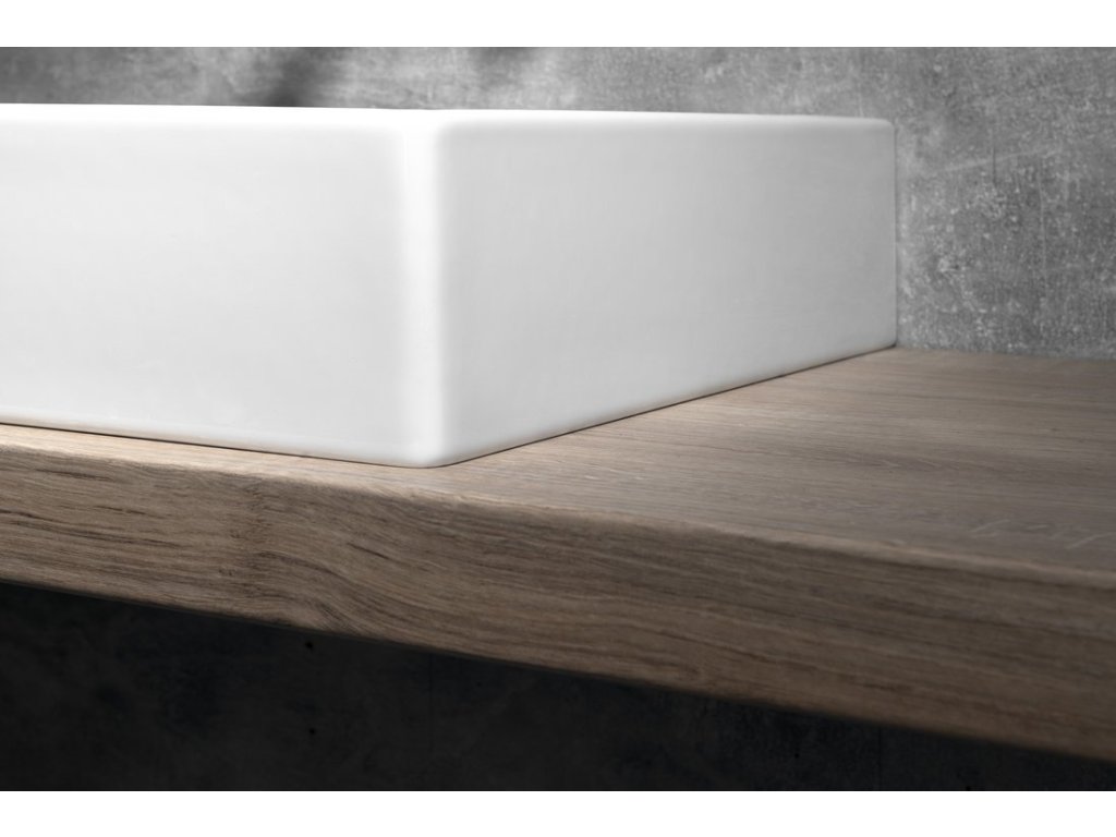 - masivní hranatá umyvadla s praktickými odkládacími plochami