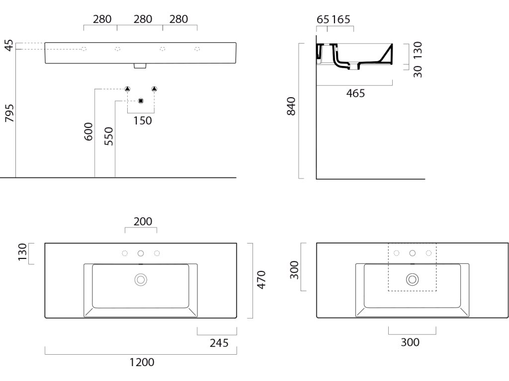GSI KUBE X keramické umyvadlo 120x47cm, s odkládacími plochami, bílá mat 9452109