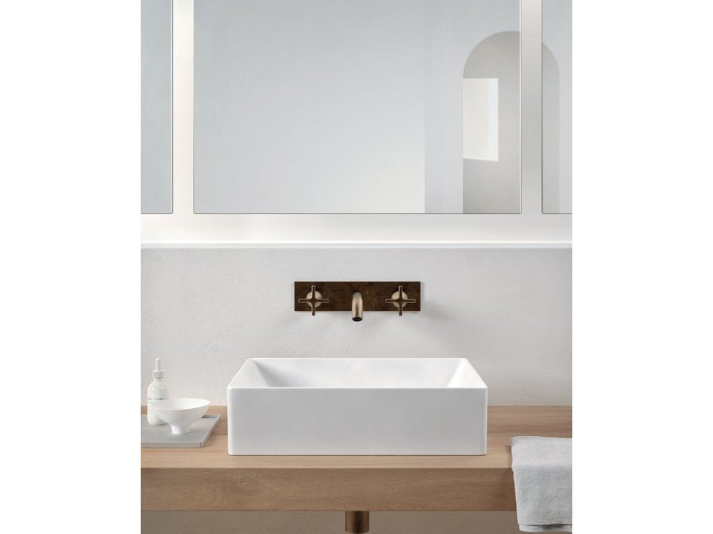 - Hranatá umyvadla s decentně zaoblenými rohy a štíhlou hranou