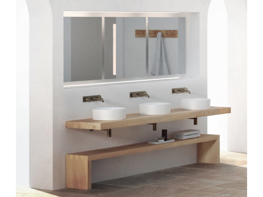- masivní hranatá umyvadla s praktickými odkládacími plochami