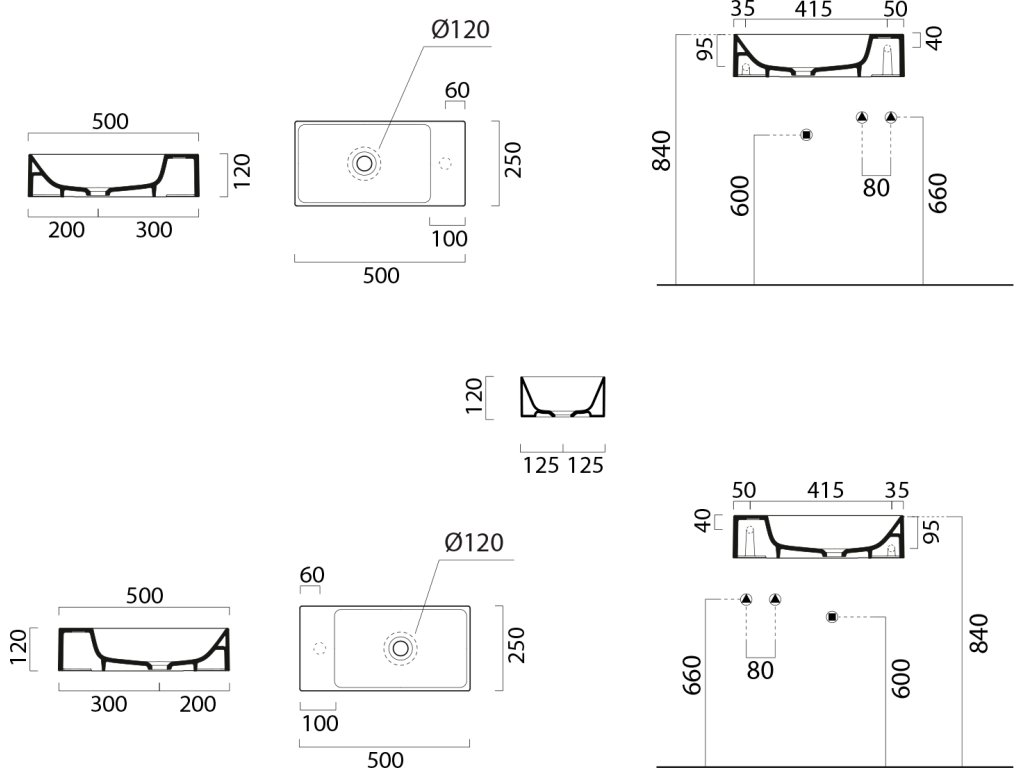 - umyvadla lze dodat i v retifikované verzi (se zabroušenou spodní plochou) pro použití na desku, s příplatkem dle platného ceníku