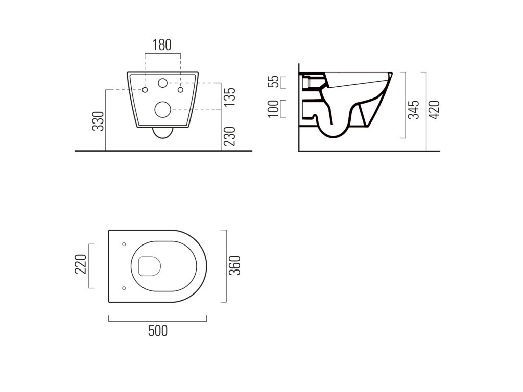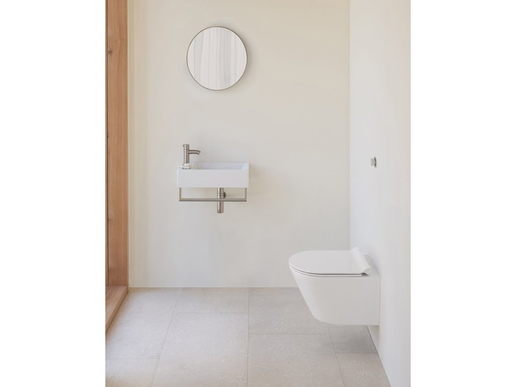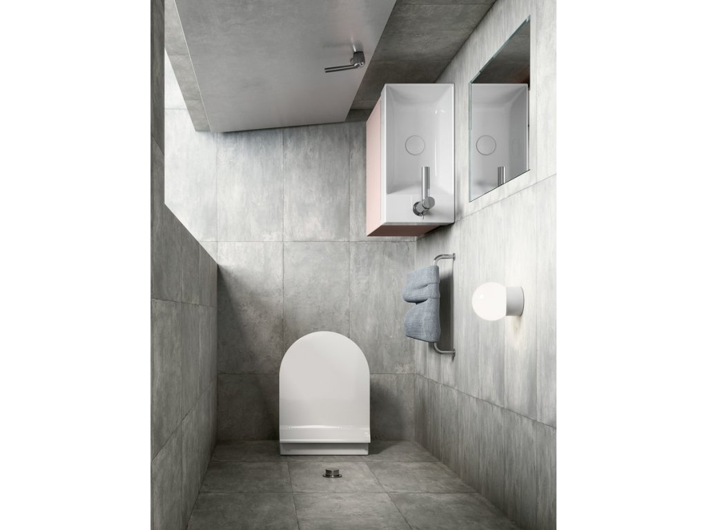 Absence tradičního splachovacího kruhu pod okrajem mísy v kombinaci s glazurou Extraglaze®, která dodává keramice dokonale hladký povrch a působivý lesk, zajišťuje maximální hygienu a snížení námahy při čištění WC. Samozřejmostí je duální systém splachování s množstvím vody 3 nebo 4,5 l.