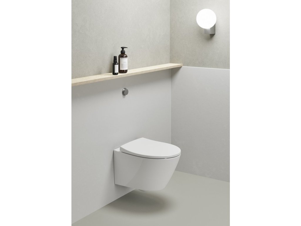 Absence tradičního splachovacího kruhu pod okrajem mísy v kombinaci s glazurou Extraglaze®, která dodává keramice dokonale hladký povrch a působivý lesk, zajišťuje maximální hygienu a snížení námahy při čištění WC. Samozřejmostí je duální systém splachování s množstvím vody 3 nebo 4,5 l.
