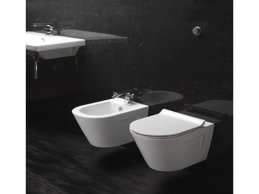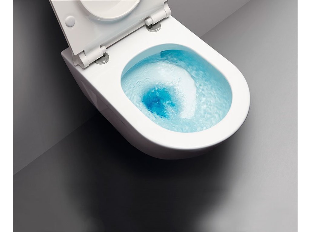 Absence tradičního splachovacího kruhu pod okrajem mísy v kombinaci s glazurou Extraglaze®, která dodává keramice dokonale hladký povrch a působivý lesk, zajišťuje maximální hygienu a snížení námahy při čištění WC. Samozřejmostí je duální systém splachování s množstvím vody 3 nebo 4,5 l.