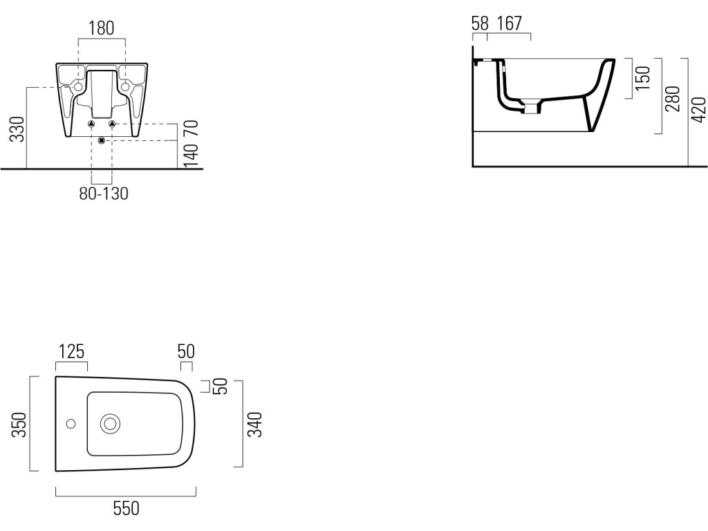 GSI NUBES bidet závěsný 35x55cm, černá mat 9665126