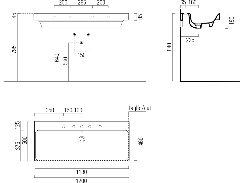 GSI NUBES keramické umyvadlo 120x50cm, bílá ExtraGlaze 9624111