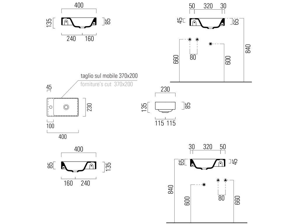 GSI NUBES keramické umývátko 40x23cm, broušená spodní hrana, pravé/levé, černá mat 96369126