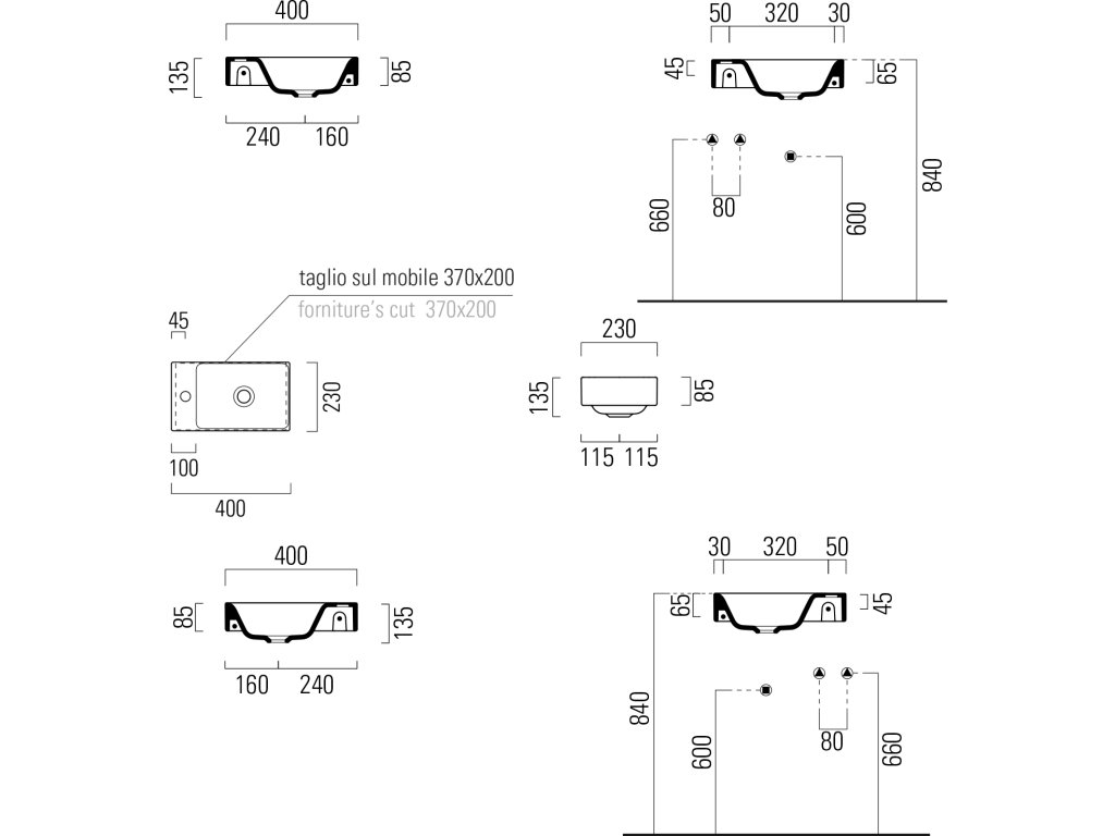 GSI NUBES keramické umývátko 40x23cm, pravé/levé, černá mat 9636126