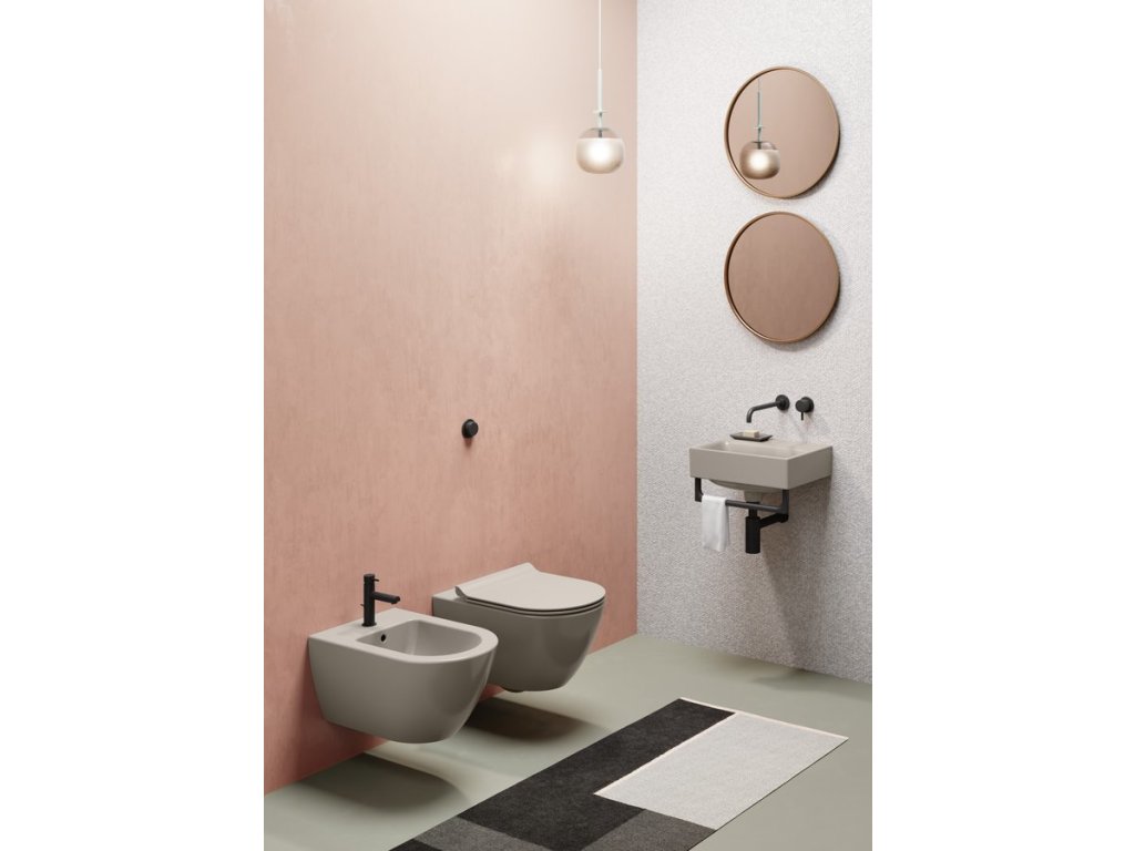 Série NUBES COLOR zahrnuje keramická umyvadla na desku v 8 barevných variacích, vybraná umyvadla na zavěšení, WC mísy a bidety v provedení bílá mat a černá mat.