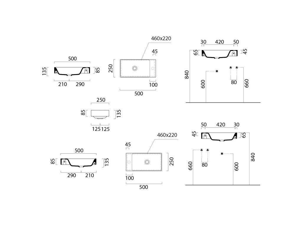 GSI NUBES keramické umývátko 50x25cm, broušená spodní hrana, bez otvoru, pravé/levé, bílá mat 96379009