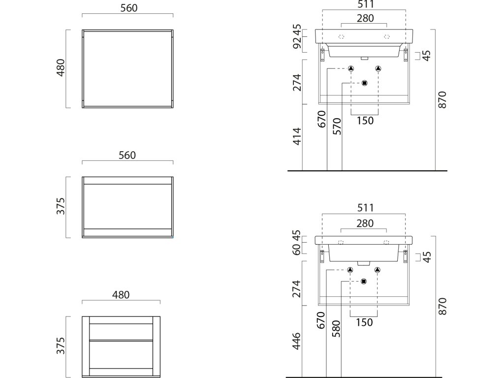GSI NUBES/NORM konstrukce pod umyvadlo 60x50cm, černá mat MSN6028