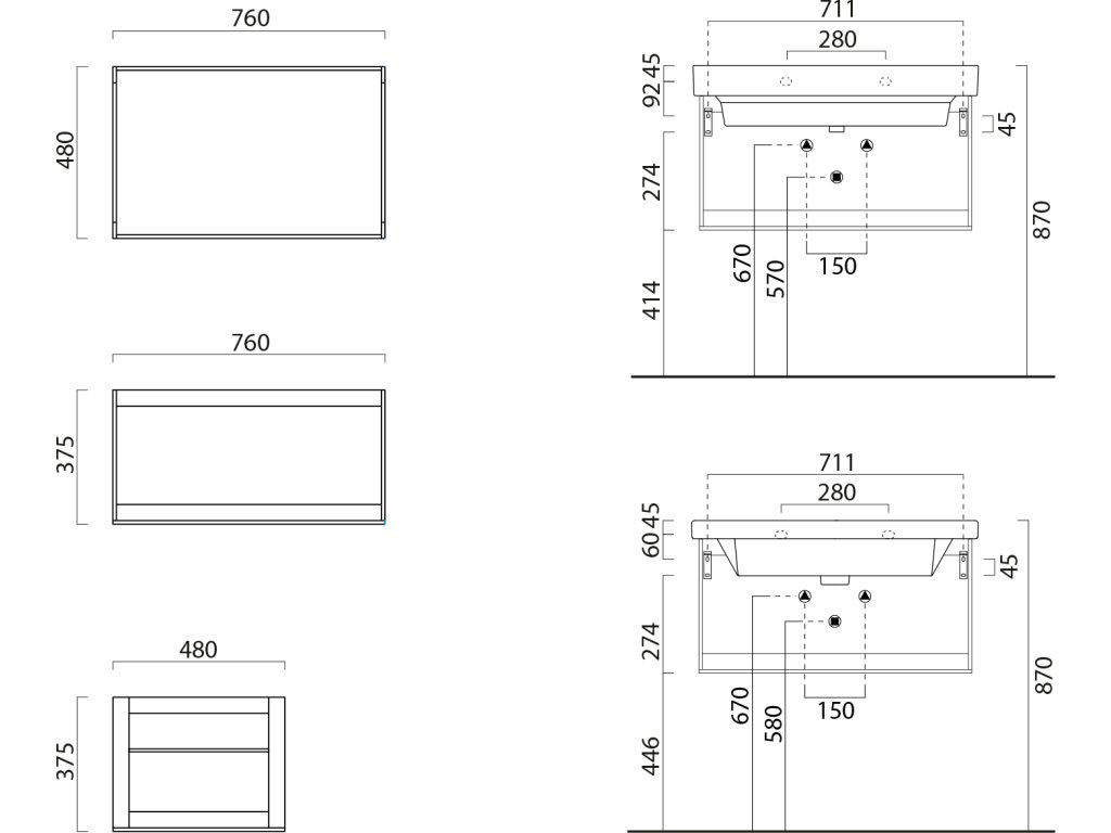GSI NUBES/NORM konstrukce pod umyvadlo 80x50cm, černá mat MSN8028