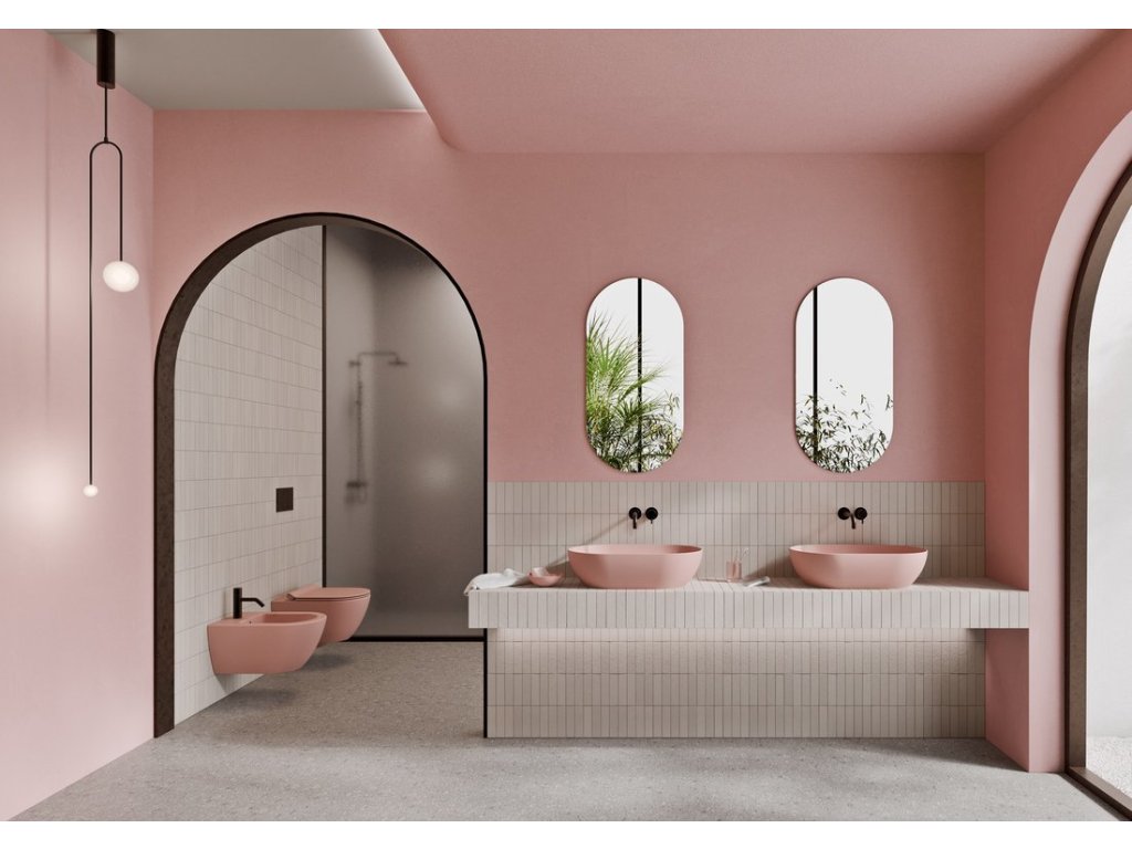 Série PURA COLOR zahrnuje keramická umyvadla na desku, závěsné WC mísy a bidety v 8 barevných variacích.