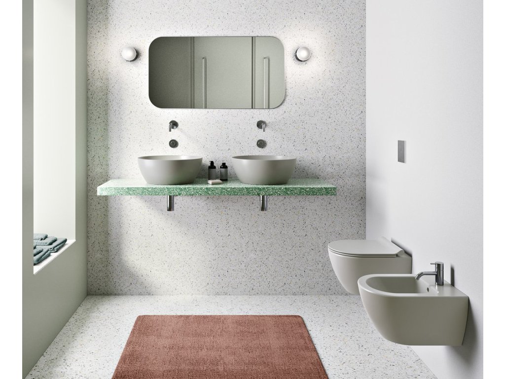 Série PURA COLOR zahrnuje keramická umyvadla na desku, závěsné WC mísy a bidety v 8 barevných variacích.