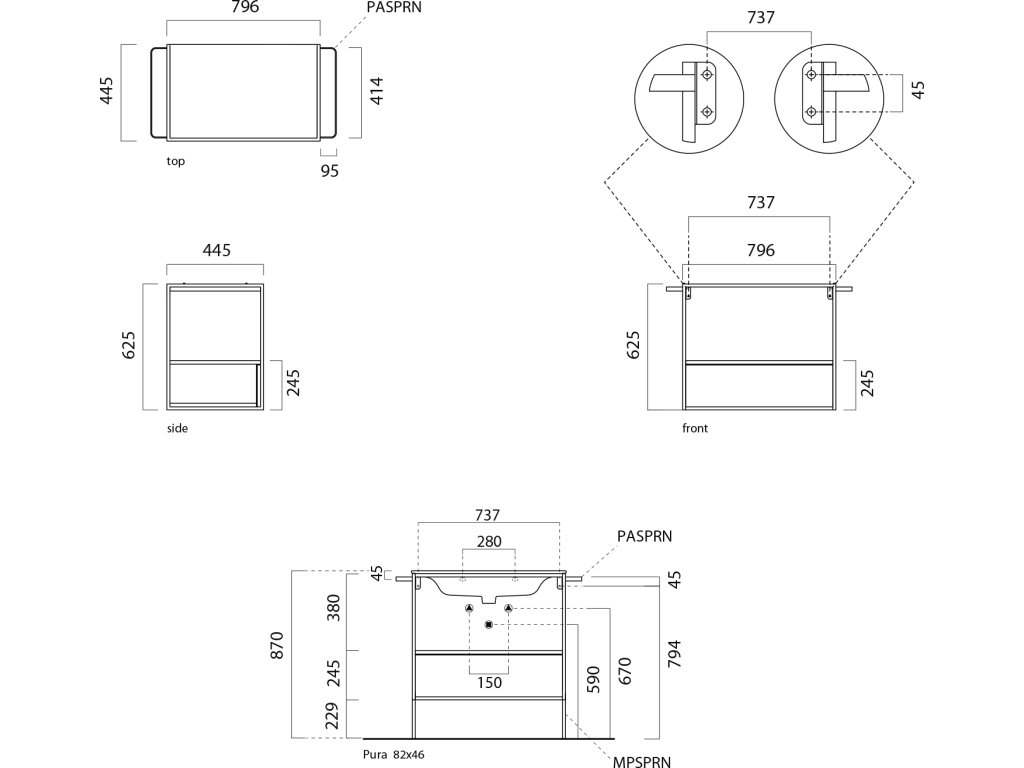 GSI PURA konstrukce pod umyvadlo 82, 6x46cm, černá mat/ořech MSAP82N