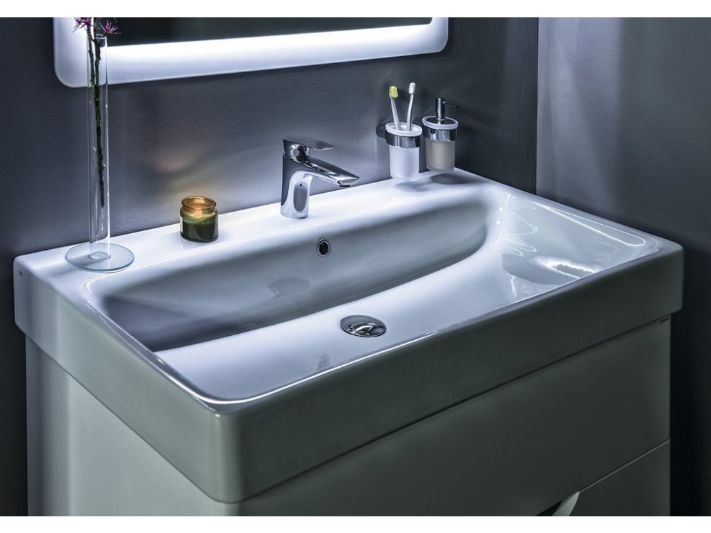 - Hranatá umyvadla s decentně zaoblenými rohy a štíhlou přední hranou