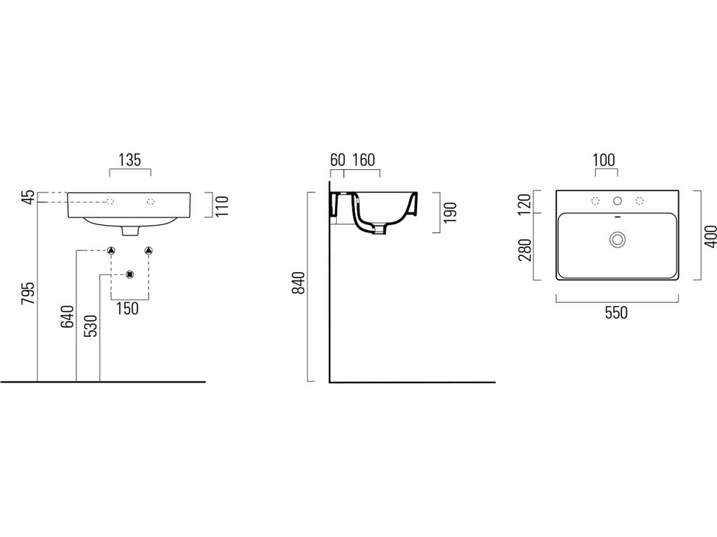 - Hranatá umyvadla s decentně zaoblenými rohy a štíhlou přední hranou