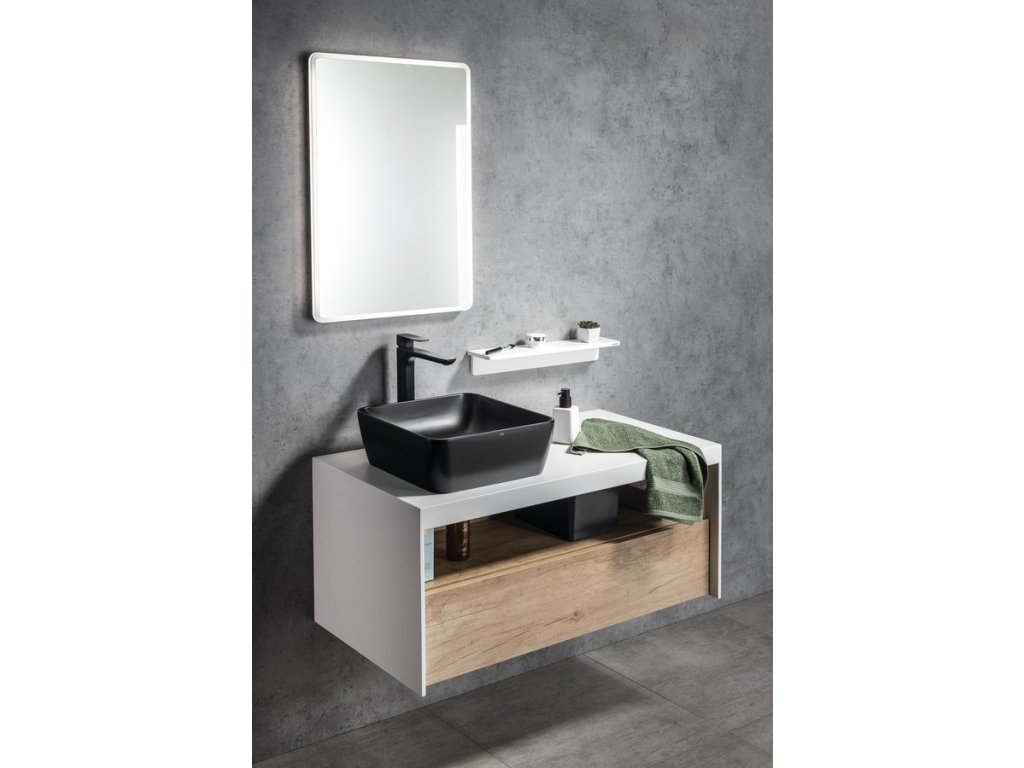 - Hranatá umyvadla s decentně zaoblenými rohy a štíhlou hranou