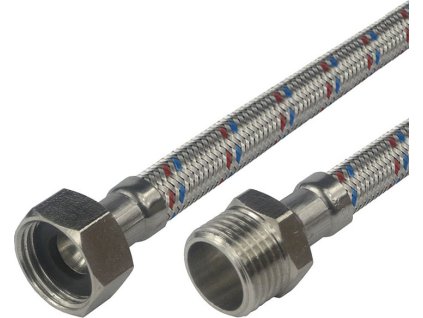 Nerezová připojovací hadice k přívodu teplé a studené vody 500mm s maximálním tlakem do 10 bar a provozní teplotou max. 95 °C