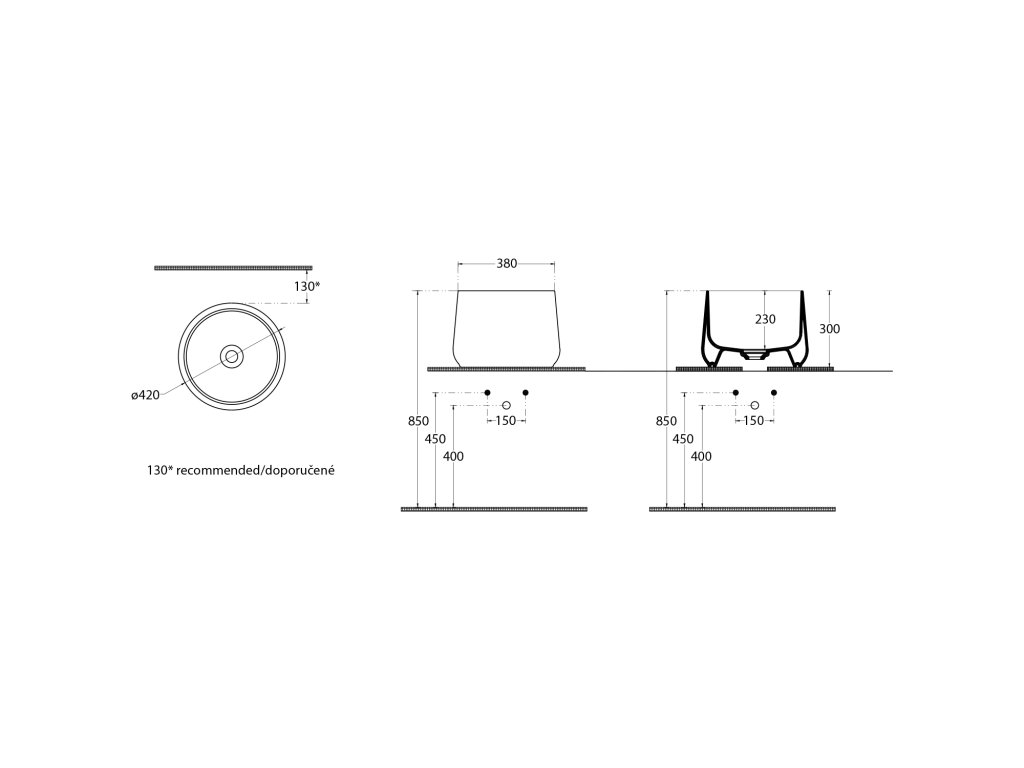 Isvea ALLEGRO keramické umyvadlo vysoké, průměr 42cm, bílá 10AL66042
