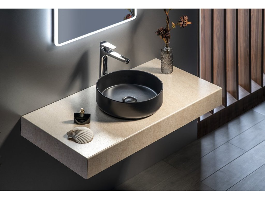 Isvea INFINITY ROUND keramické umyvadlo na desku, průměr 36cm, černá mat 10NF65036-2N