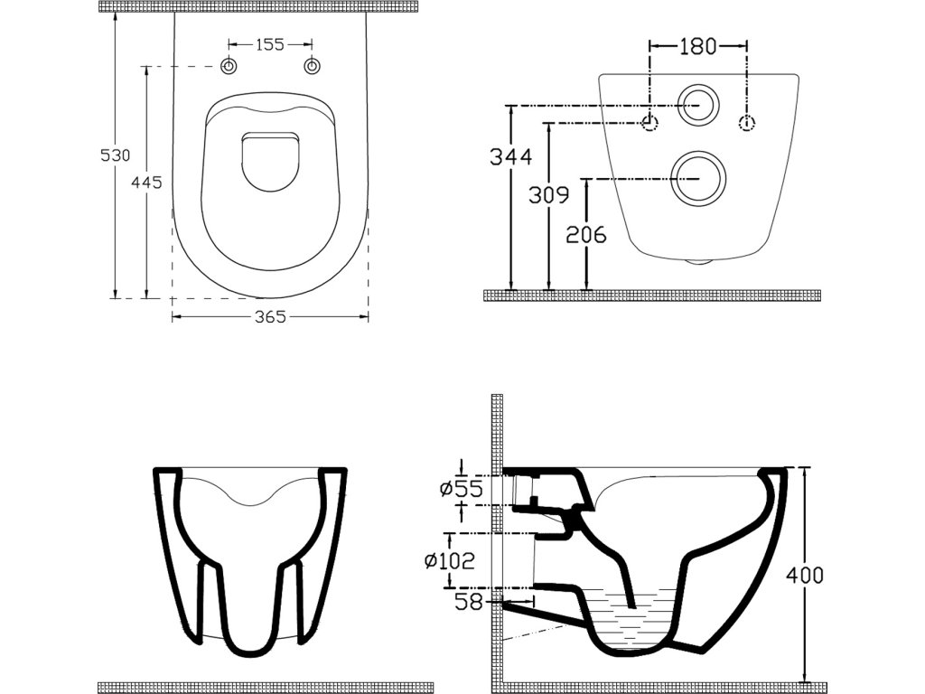 Rimless (NoRim) – toalety bez tradičního oplachového kruhu. Hladký povrch bez dutin a záhybů. Oplachová voda vytéká rozdělovačem vody pouze ze zadní části WC mísy a díky speciálnímu tvaru keramiky dokonale opláchne vnitřní prostor. Výhodou je snadná údržba a čištění WC mísy.