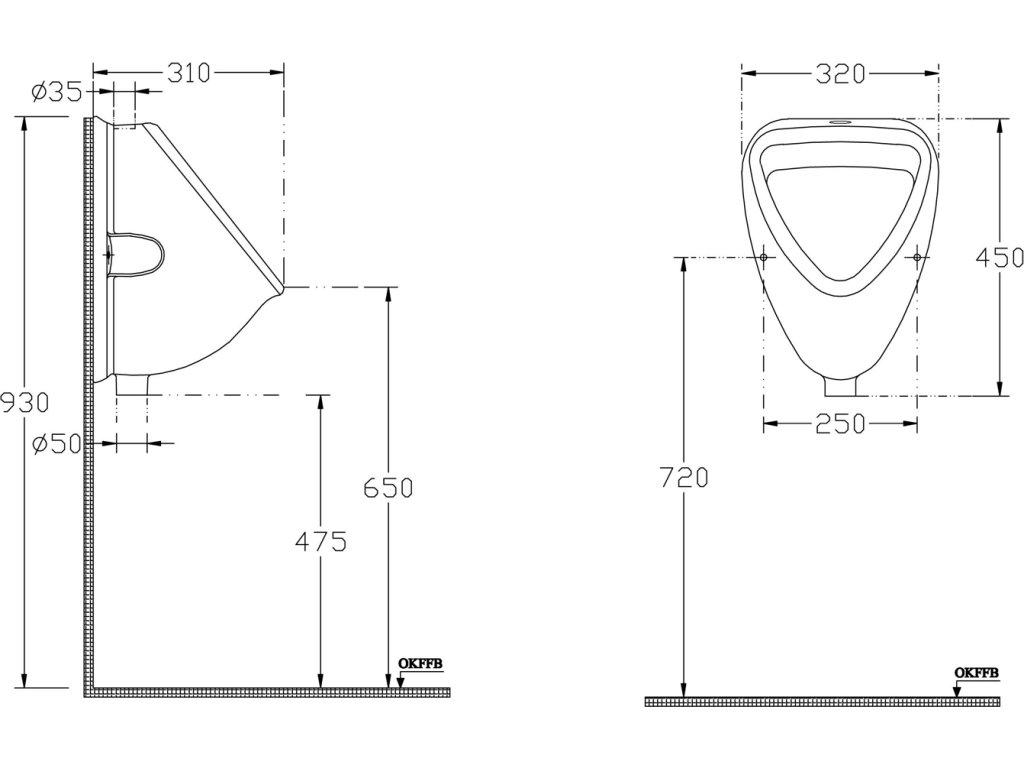 Isvea DYNASTY urinál se zakrytým přívodem vody, 39x58cm 10SZ92001-DS